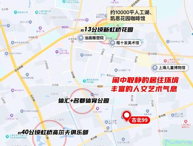 古北 99 官方售楼处营销中心☎:是合生创展打造的古北核心低密豪宅,踞闵行金虹桥 CAZ 内,邻 15 号线吴中路站,近内环、中环,15 分钟达徐家汇。容积率仅 1.2,规划小高层与叠墅,主力 150-280㎡精装户型,装标含嘉格纳厨电等一线 官方售楼处营销中心☎:近黄金城道与多所名校,为高净值人群优选。