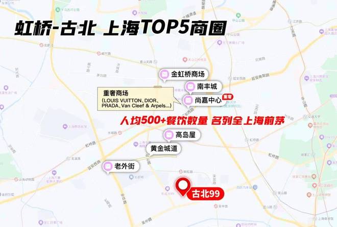 这里还紧贴虹桥商圈,是上海TOP5商圈,拥有尚嘉中心(重奢)、虹桥南丰城、金虹桥商场等。
