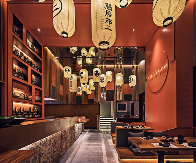 三、日式混搭:传统与现代,碰撞出独特韵味这组日式混搭的日韩料理空间装修美图,以其独特的设计理念和混搭风格,让人眼前一亮。设计师在保留日式传统元素的基础上,大胆地融入了现代设计元素和异国风情,如工业风的吊灯、复古的留声机和具有异域特色的装饰品等,让整个空间充满了趣味性和艺术性。在色彩搭配上,日式混搭空间多采用对比色和鲜艳色彩,营造出一种活泼而富有活力的用餐氛围。同时,设计师还巧妙地运用了空间的高度和宽度,设置了多处拍照打卡点,如精美的日式灯笼、复古的自行车和独特的墙面装饰等,让食客们在品尝美食的同时,也能享受到拍照的乐趣。四、韩式简约:精致与实用并重,打造舒适用餐体验这组韩式简约的日韩料理空间装修美图,以其精致与实用并重的设计风格,为食客们提供了一个既美观又实用的用餐环境。设计师在保留韩式传统元素的基础上,采用了简洁的线条和明亮的色彩,营造出一种简约而优雅的用餐氛围。在空间布局上,韩式简约空间注重实用性和舒适度。设计师巧妙地运用了空间的高度和宽度,设置了多处休息区和聊天区,让食客们在品尝美食的同时,也能享受到与亲朋好友交流的乐趣。此外,设计师还注重细节的处理,如精致的灯具、挂画和墙面装饰等,让整个空间充满了艺术气息。